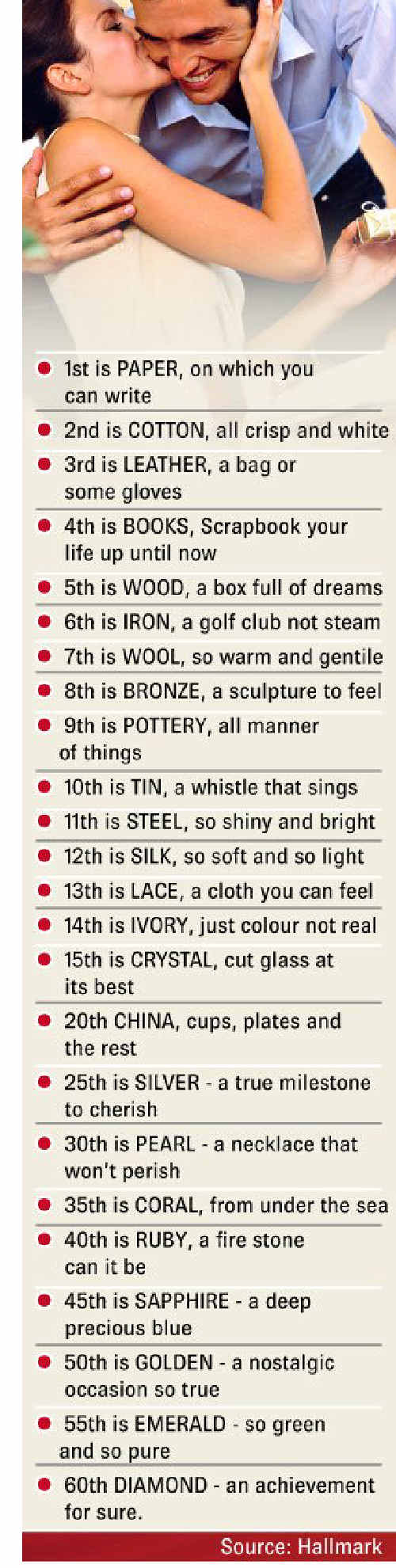 TRADITIONAL anniversary gift customs may date back centuries but many couples today still stick to the age-old rules.